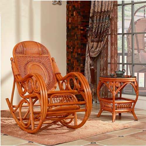 Yulan Outdoor Natural Real Rattan,wood Rocking Chair Wood Rocking Chair Lunch Break Recliner Wicker Chair Hand-woven rocking chair(472)