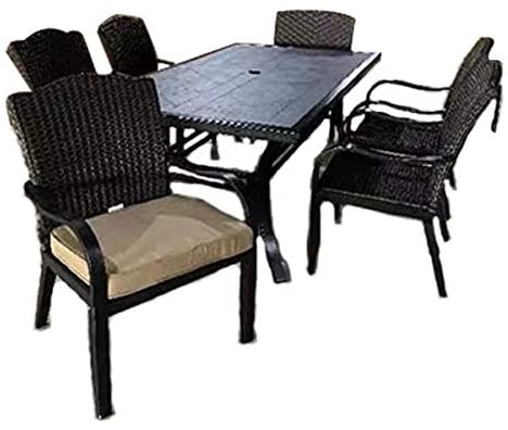 Yulan Outdoor Furniture 7 PIECE CAST ALUMINUM OUTDOOR DINING SET WITH TABLE & 6 CHAIRS With Cushion 484