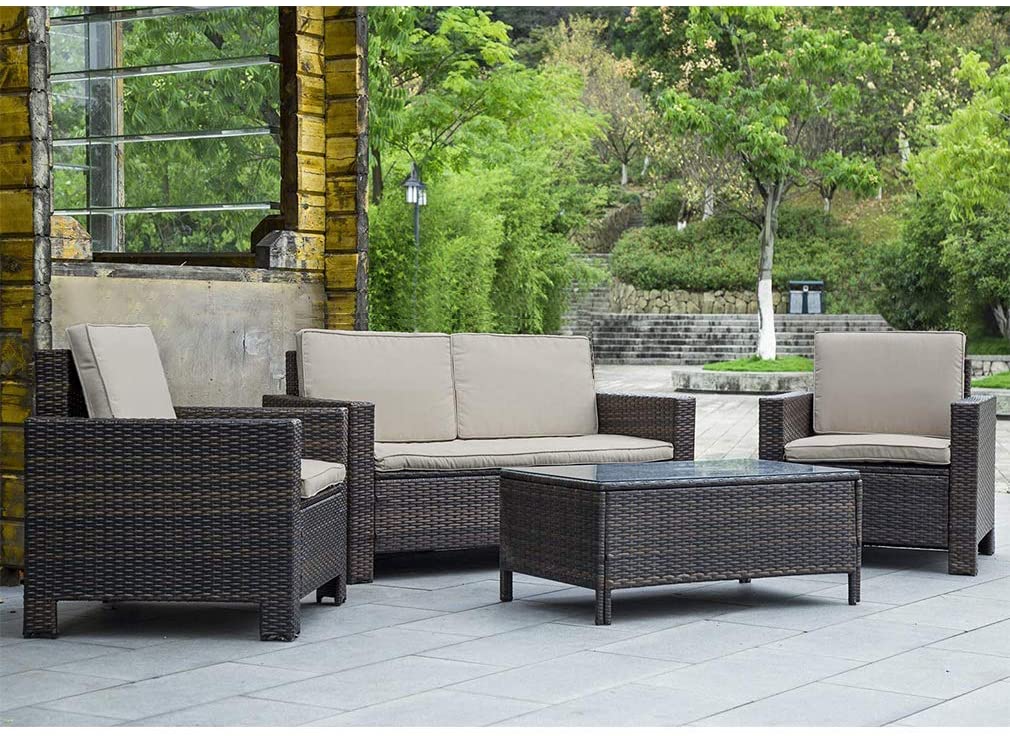 Yulan Outdoor Patio Furniture Sets, PE Rattan Wicker Chair Conversation Sets with Soft Cushion and Glass Coffee Table for Garden Backyard Porch Poolside 901