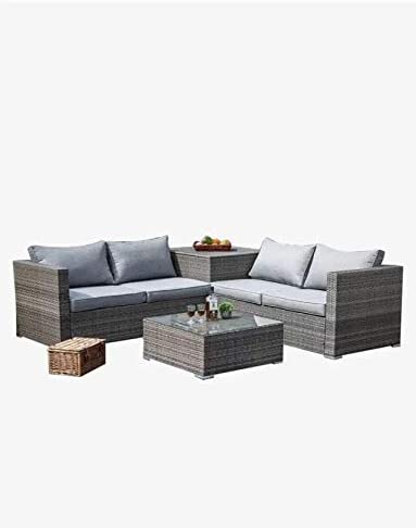 Yulan Outdoor 4 PCS Cushioned PE Rattan Wicker Sectional Sofa Set Garden Patio Furniture Set, Grey 023